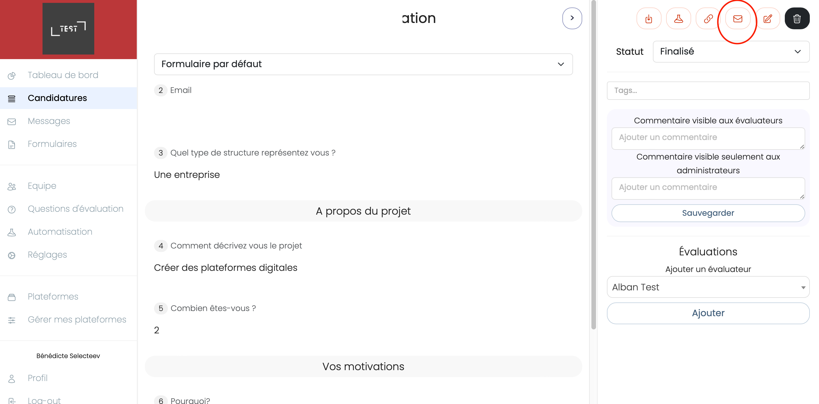 Pour cela, vous devez cliquer sur l'un des vous candidats, puis cliquer sur l'icône de message à droite.